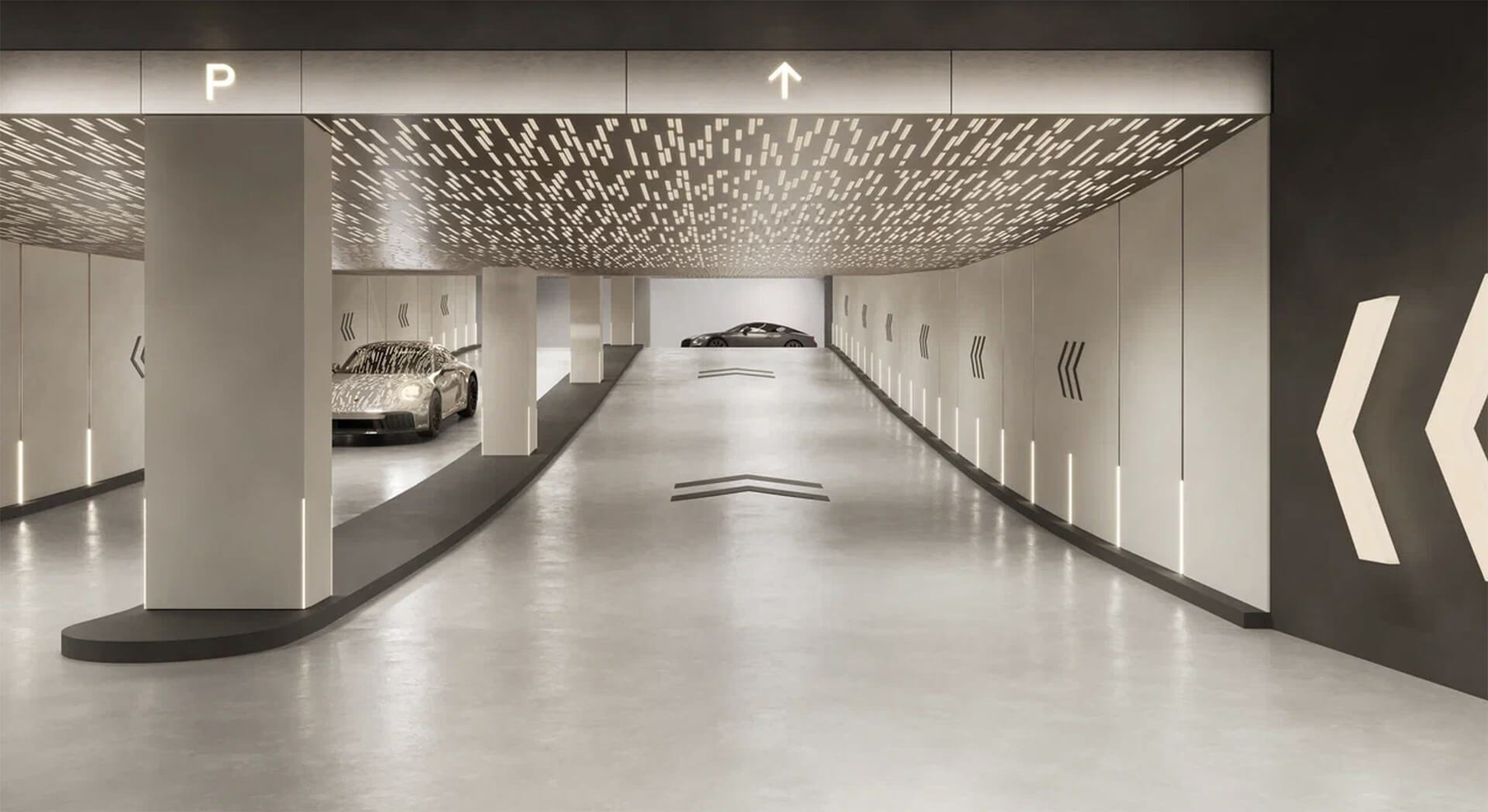 Внутренняя навигация выполнена по гостиничным стандартам: чёткая разметка, подсветка, сигнальные индикаторы, легко читаемые указатели. Для владельцев электромобилей предусмотрены зарядные станции, для двухколёсного транспорта — мото-места, а также автомойка премиум-уровня с современным оборудованием. Широкие проезды и оптимизированные углы въезда делают маневрирование простым и безопасным.